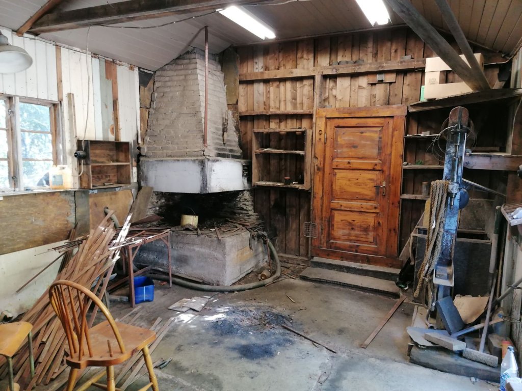 Nesten alt var som før der inne. Essa og benken, men ambolten var borte, og det var trist å se. Like fullt minnes jeg hvordan det var, og “hørte” lyden av hammerslagene, av kompressoren, som far satte på hver morgen på slaget sju. Jeg var tilbake i tid, til min barndom. Da jeg var, den jeg nå er, lykkelig. Bare mer bekymringsløs. Jeg brukte noen minutter der inne, tok det inn – lukten og “lydene”. Alle minnene.