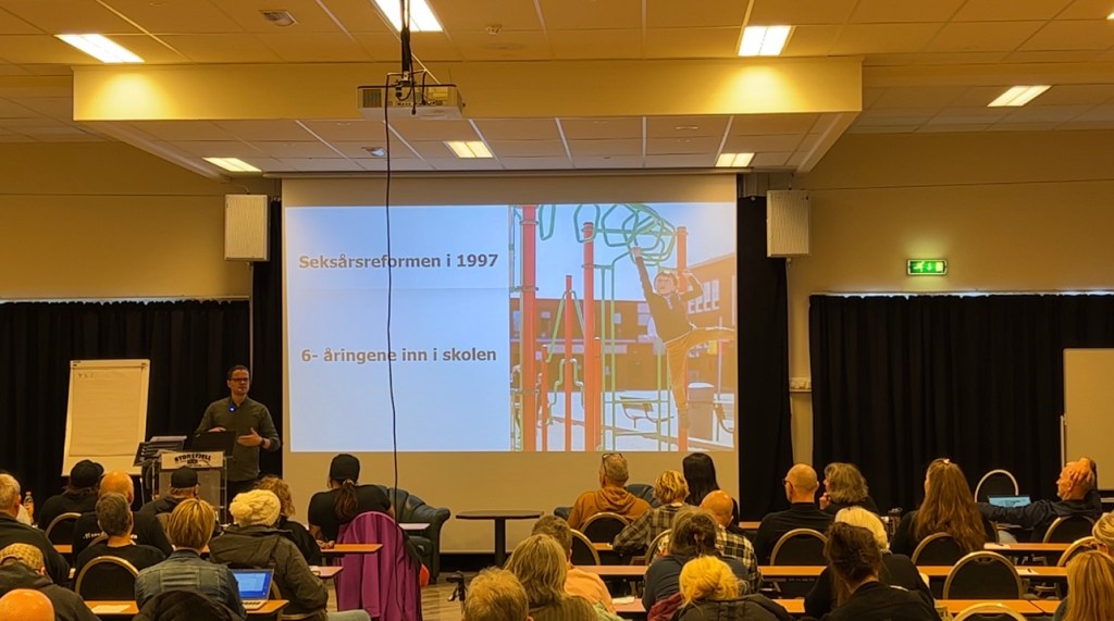 I følge ham mener politikere mye om skolen, slik lærere gjør, og en selvfølge, men det er det ikke, tenker jeg. Andreas mener skolen er for konkurransebasert, preget av alt for mye testing og måling, og nåløyet har blitt alt for trangt. Han spør seg selv, og oss, om lærerne virkelig ser hele mennesket? I et helhetlig perspektiv? “Ser vi virkelig det?” Slik jeg forstår samfunnet nå, er det langt færre som ser naboene sine, alle er for opptatt med sitt, så at skolene skal være så mye annerledes, tja. Og Andreas fortsetter om hvordan fyrtårnet for alle skolene i Norge, nemlig Osloskolene er opptatt av å følge samfunnet generelt, i det å konkurrere – beste elever, beste lærere, beste skole, best i alt. Rangering – vurdering – liten – stor, ja alt og alle skal måles, og kanskje mest de små, 1.klassingene. De som skulle ha mer lek enn læring. “Hvor ble det av den myke skolestarten som ble vedtatt i skolereformen i 1997? Vet dere, en seksåring har nesten like lang skoledag som en ungdomsskoleelev, så skolen går hardt og høyt ut.” Ingen kjære mor nei, det har jeg skjønt lenge siden jeg får insideinformasjon via barnebarn og skoleansatte i nær familie.