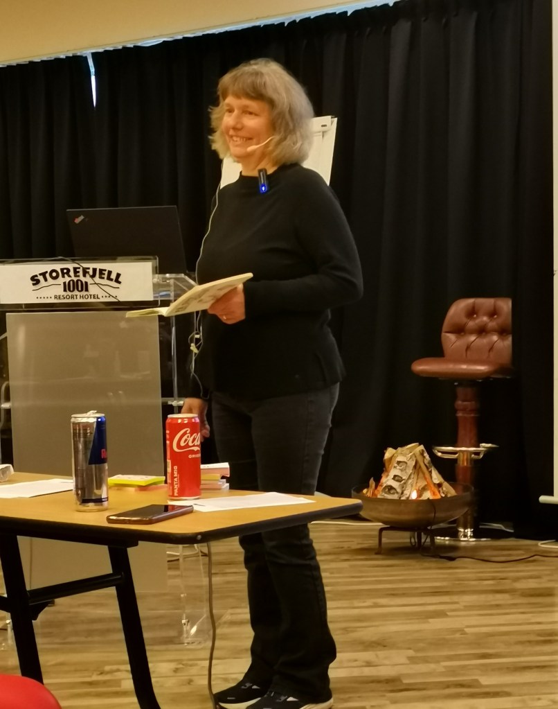 Vi holder koken de fleste av oss, selv om noen har falt fra. Ikke så rart med tanke på hvor tøffe historier vi får servert. De fleste har sågar fått en ekstra dose, de som var her i går. Jeg er nesten som uthvilt å regne… Summing og stoler dras, host og hark, ja, hva skjer? På tide å starte opp – dagen blir lang, snart elleve timer siden jeg satte føttene på gulvet. Sara Eline Eide, forfatter og veileder, gjør seg klar ser jeg. Vi hadde faktisk en interessant samtale tidligere på dagen. Nei, vi kjente hverandre ikke, men selveste Kjell-Torstein, primus motor for dette fantastiske seminaret, introduserte oss for hverandre. Hun fikk et kjapt innblikk i min bloggvirksomhet – “Sjekk den ut”, sa Kjell, og kanskje får jeg en ny følger, eller kanskje jeg skulle følge henne på ordet om å gi ut bok, slik hun har gjort: Skolefravær og På oppdagelsesferd sammen.