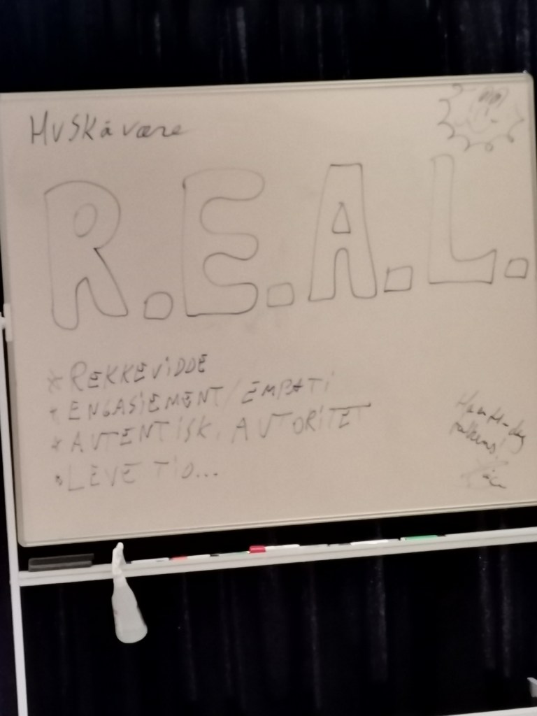 Det vises bilder og jeg kan ikke si jeg er sjokkert over det jeg har hørt. Godt det finnes noen som Sara Eline: Vi skalgi barnafølelsen av verdi. Være undrende sammen med dem – spørre, vise interesse. For hva drømte du om å bli som barn? Jeg tenker meg om, og svaret er vel sangerinne, eller prinsesse. Og det er nettopp samme spørsmålet vi må stille barna nå, hva de drømmer om å bli, for å finne tilbake til hva de liker, hva de ønsker. Det er jo ikke rart at når de prøver å tilpasse seg verden uten å lykkes, da gir de opp. Jeg har selv gjort det. Derfor, sier Sara Eline, at det er så viktig å finne og hjelpe til med å finne tilbake til de reele verdiene i livet. Sara Eline hever stemmen en smule, den ellers så rolige, balanserte stemmen: Fellesnevneren er, og da også hvor løsningen ligger: Manglende trygghet, mestring og gode relasjoner og følelsen av å ikke høre til – START HER! Se etter verdiene og etter manglene i elevenes liv.
