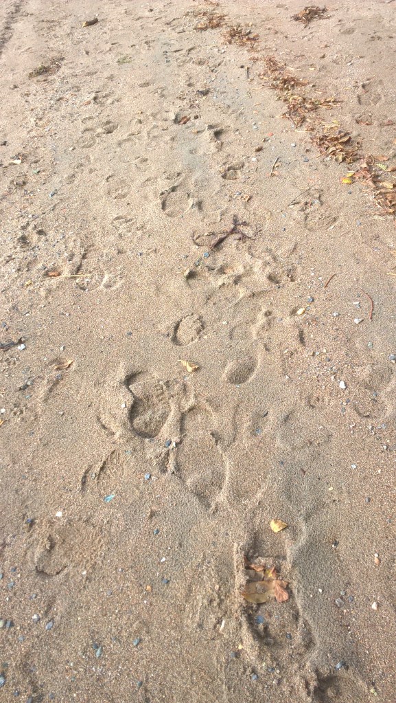 En natt hadde en mann en drøm. Han drømte at han spaserte langs stranden sammen med Herren! Over himmelen kom bilder fra livet hans til syne. For hvert bilde han så, oppdaget han at det var to par fotspor i sanden; det ene var hans egne, og det andre var Herrens. Da det siste bilde fór forbi over himmelen, så han tilbake på fotsporene i sanden. Han la merke til at mange ganger i livets løp var det bare ett par