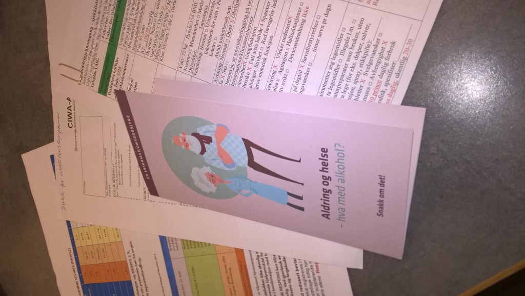 Så hvem sitt ansvar er det å fortelle dem at hverken de «uskyldige» paracet-tablettene eller antidepressiva og sovemedisiner ikke skal kombineres med alkohol? Egentlig er det vel fastlegen som er hovedansvarlig, men når de ikke har tatt seg bryderiet med og undersøkt nøye nok pasientens alkoholvaner, tatt seg tid til å spørre eller fordi de ikke våger å spørre, våger å bry seg, da blir det hjemmehjelpens ansvar. Det høres ikke ut som heller ikke de går gjennom sjekklisten på sine daglige hjemmebesøksrunder. Her er det vel tid og penger som oftest setter en stopper for hvordan hver enkelt av de eldre blir møtt og ivaretatt, og jeg ønsker ikke å angripe eller anklage de fagkyndige, men det koster så lite å sette av noen minutter til en omtenksom prat, selv hvor hektisk arbeidsdagen er. Ikke minst vil jeg tro det er mer lønnsomt på sikt.