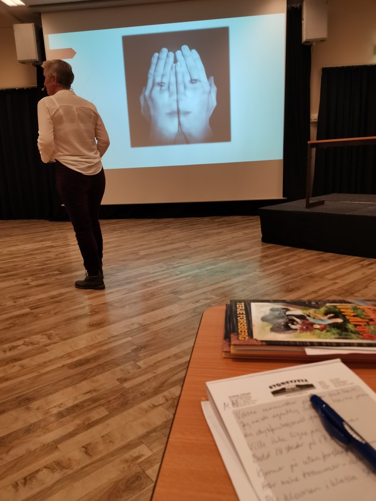 Leif griper fatt i Ingers historie, om læreren som så henne, men som selv ble mobbet vekk fra sin lærerstilling. Han retter blikket mot panelet, bestående av personer fra Nav, politi, politikere (Krf), oppvekstetaten og psykisk helse i kommunen/nærområdet, og ikke minst talspersonen fra organisasjonen Utsattmann.no, Jarle Holseter. Det slår meg, et megatankekors, at kanskje bare én av disse kommer til å bivåne resten av seminaret, og i tillegg skal han, Jarle, fortelle sin sterke historie om overgrep. Så blir det bare tomme ord fra de øvrige i panelet – ord og lovnader uten handling? Det vil tiden vise …