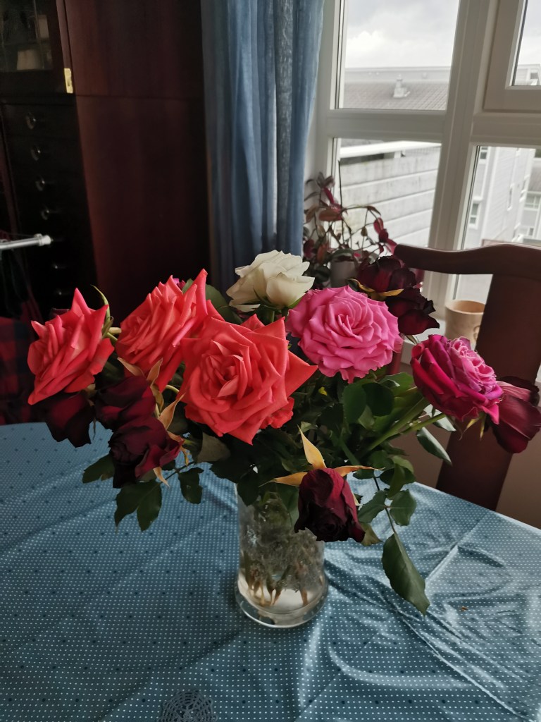 Jeg fikk roser av min nabo til min bursdag for over to uker siden. I mellomtiden har jeg vært bortreist, men likevel står de fortsatt ganske så fine. De ble gitt med kjærlighet tenker jeg…