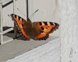 Denne sommerfuglen kom og satte seg ved min side, mens vi sendte meldinger til hverandre, den var vel et tegn på noe godt og fint som kommer i fremtiden… Og bildet fikk hun, som takk…