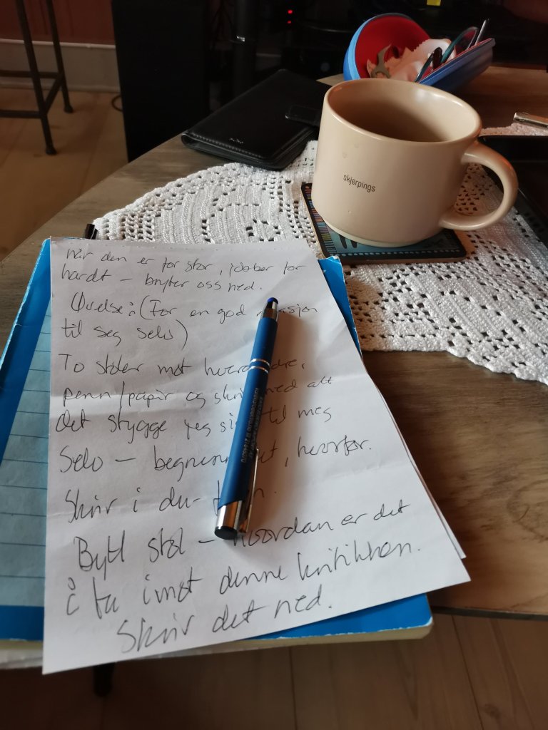 For første gang på lenge begynte jeg å egne oppmerksomheten mot meg selv. Ikke alltid fornøyelig, men nødvendig.